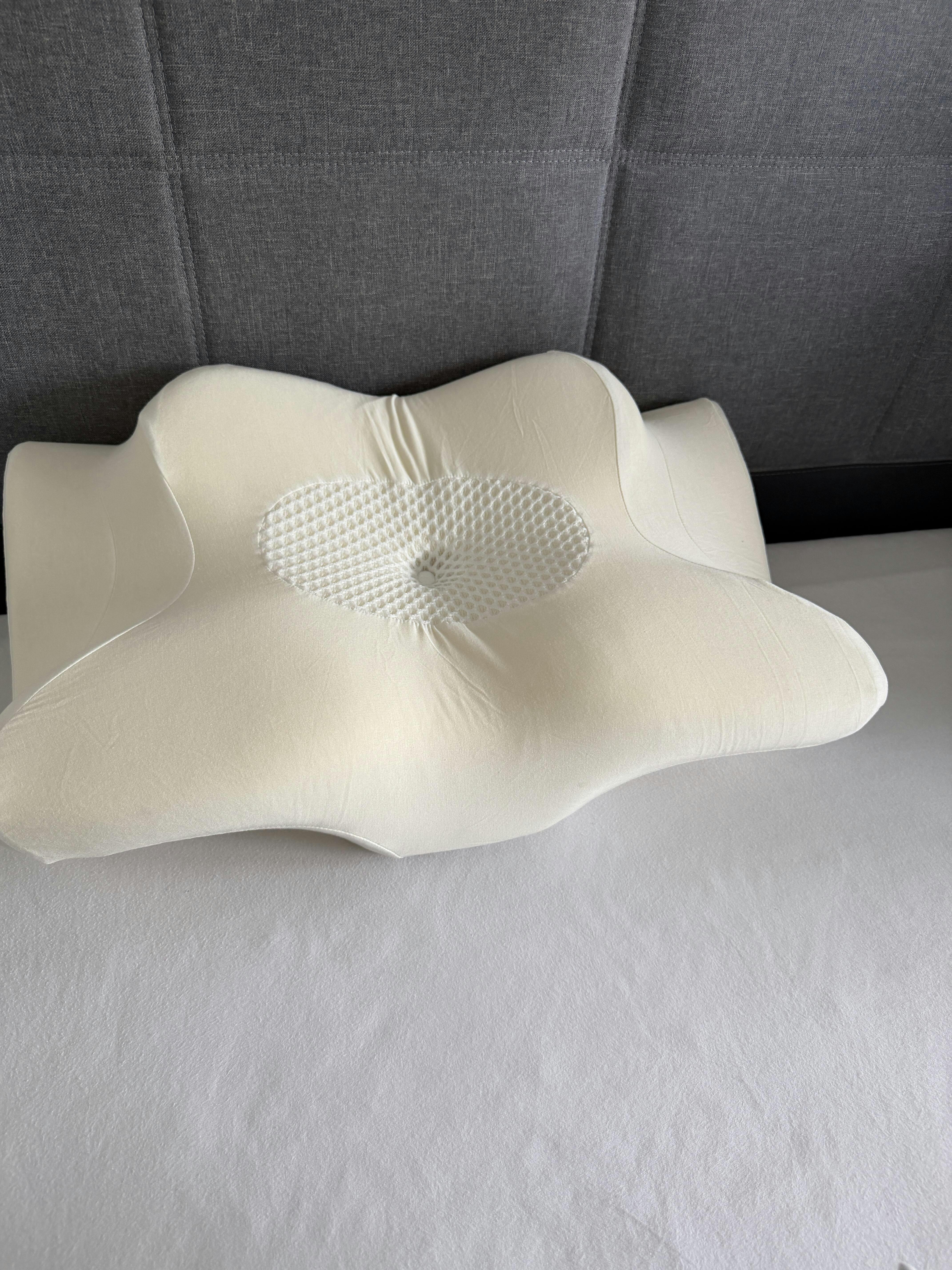 Die Form ist anfangs etwas gewöhnungsbedürftig, aber man schläft wirklich gut darauf. Das Beste ist, dass ich seitdem keine Nackenschmerzen mehr habe.